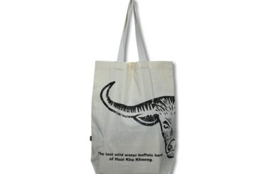 กระเป๋าเนื้อผ้าดิบ สกรีนลายควายป่า สามารถใช้งานได้ในทุกๆ วัน (ราคา 89 บาท/ใบ)